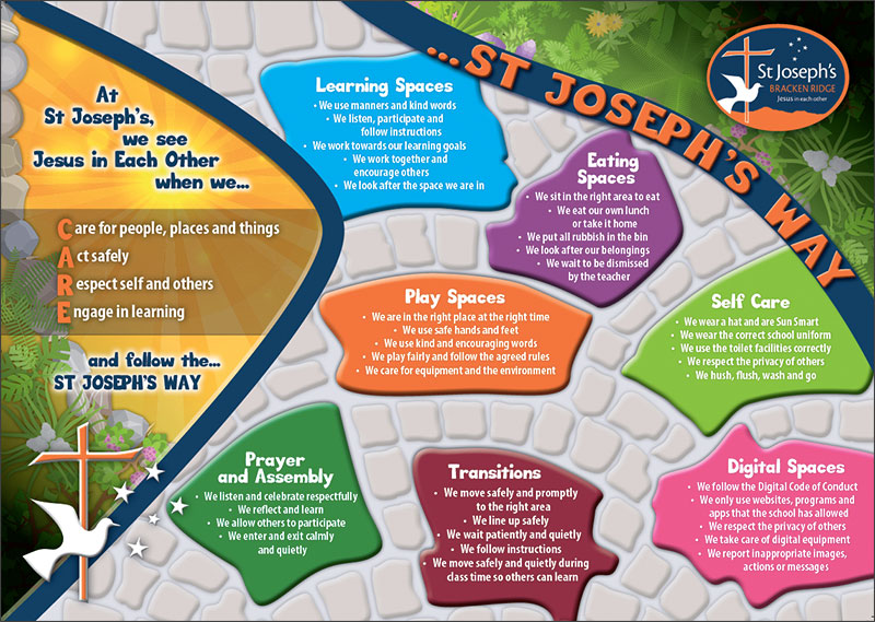 You are here:HomeOur SchoolSt Josephs Way St Joseph's Way At St Joseph's we see Jesus in each other when we follow... ST JOSEPH'S WAY. © Brisbane Catholic Education, St Joseph's Catholic Primary School (2024)